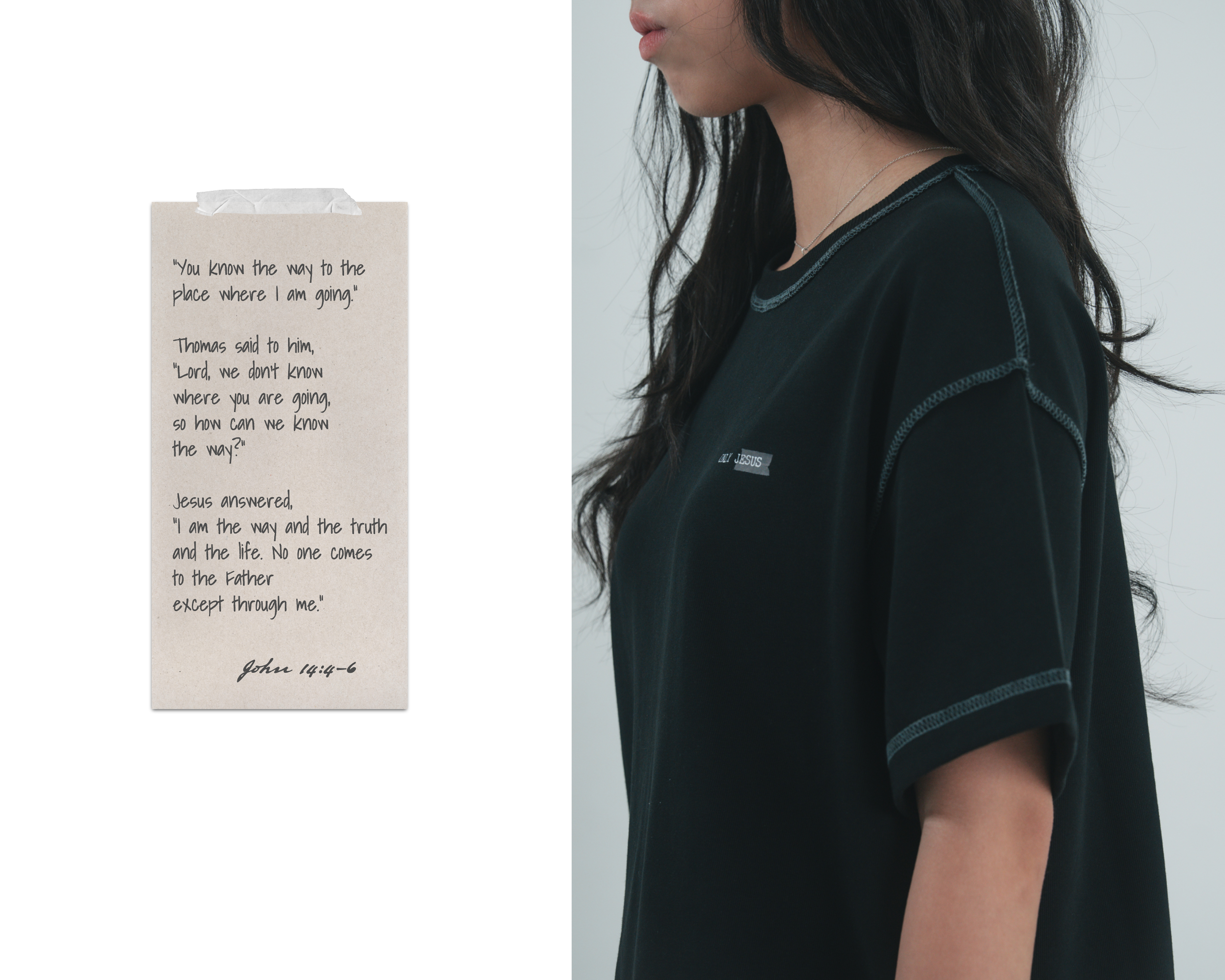Only Jesus 티셔츠는 ‘요한복음 14:4-6’ 말씀을 모티브로 만들어졌습니다.